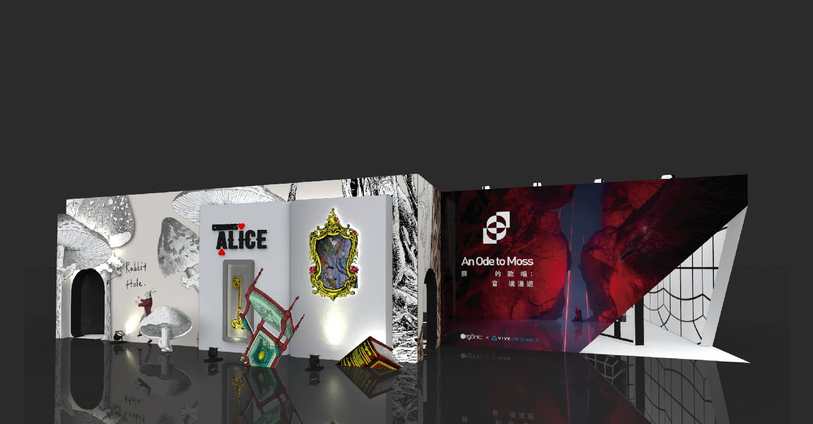 HTC VIVE旗下內容品牌HTC VIVE Arts,自2017年起與超過五十個藝術文化機構合作,包含倫敦泰特現代美術館、巴黎羅浮宮、奧塞美術館、美國自然科學博物館、台北故宮博物院等。今年與英國百年藝術殿堂V&A博物館合作,以VR科技結合藝術演繹文學作品《愛麗絲夢遊仙境》,製作《好奇的愛麗絲 Curious Alice》,作品包含三個經典章節,將領先全球,首度在台線下完整展出。《好奇的愛麗絲 Curious Alice》結合童話、插畫、與虛擬互動,觀眾以第一人視角進入故事,再以VIVE Arts首次將手勢追蹤系統(Hand tracking)應用在作品上,讓觀眾直接與虛擬物件互動,達成身歷其境之效果。
