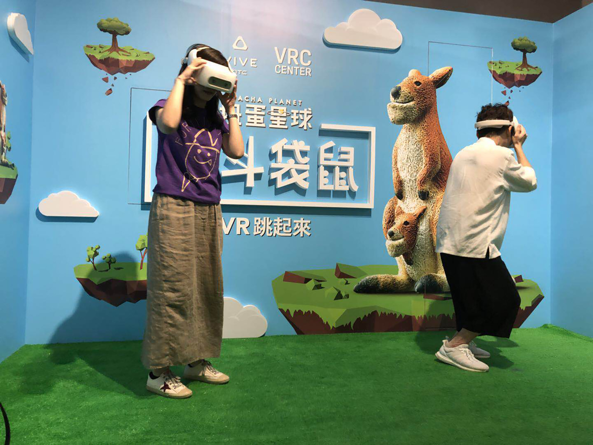 HTC VIVE ORIGINALS obtained the exclusive authorization of the famous Japanese IP “Shakurel Planet” and launched “Gacha Planet”, the world’s first VR kinetic energy game at “Gacha Planet” exhibitions from June 22 to 23, 2018 in Huashan 1914 Creative Park, Taipei and Pier 2 Art Center, Kaohsiung. At these venues, the VIVE Focus headset representing an all-in-one solution for enterprise served as the model for experience. Its easy mobility allowed the user to chase the kangaroos in virtual reality without constraints.